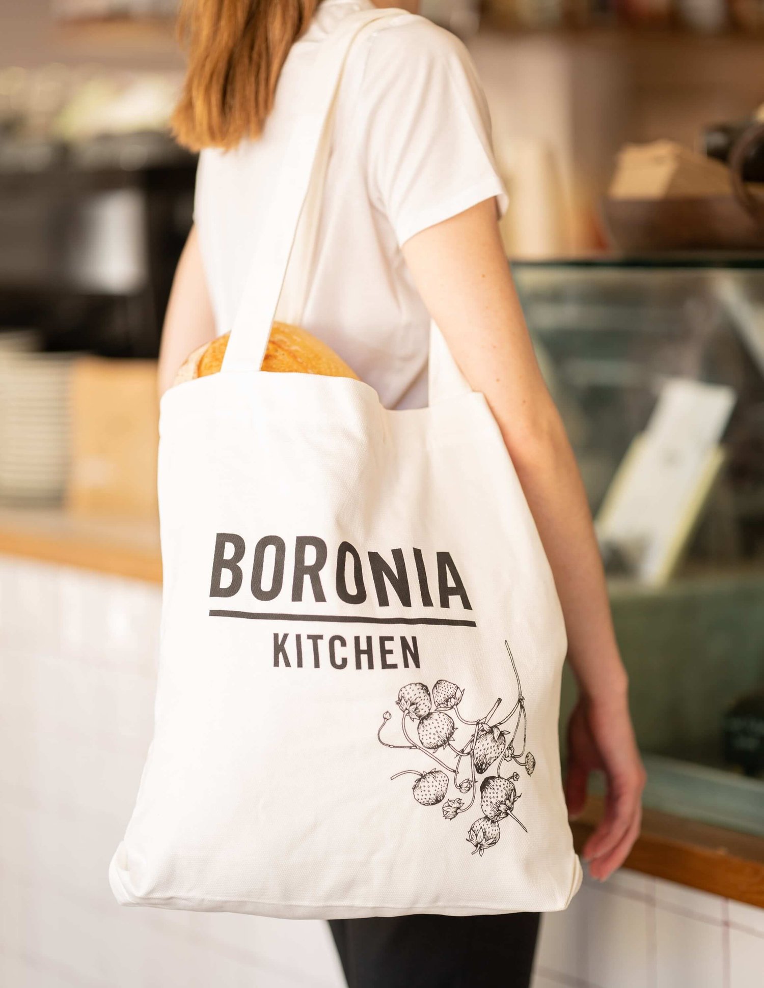Shop › Boronia Kitchen Tote Bag Image 1 of 3 Image 2 of 3 Image 3 of 3 Boronia Kitchen Tote Bag $20.95 100% cotton canvas tote bag, with reinforced shoulder straps. 42cm x 42cm. Gusset width 9.5cm 320 GSM. Add To Cart Added! 100% cotton canvas tote bag, with reinforced shoulder straps. 42cm x 42cm. Gusset width 9.5cm 320 GSM. You Might Also Like Quick View Boronia Kitchen Stoneware Reusable Coffee Cup $40.95 Quick View Boronia Kitchen Water Bottle $20.95